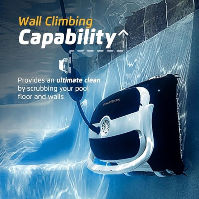• Wall-Scrubbing Power: Climbs and scrubs pool walls efficiently, ensuring a deep clean on various surfaces and pool shapes.