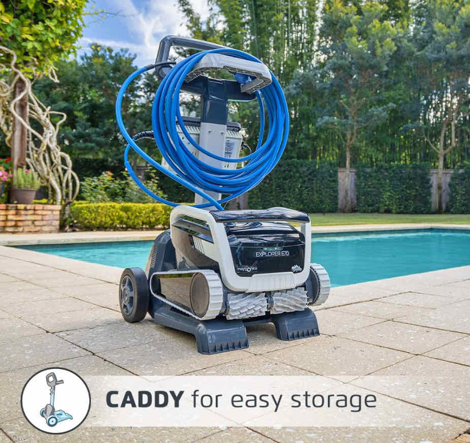 And the included caddy makes transporting and storing your robotic pool cleaner a breeze with convenient cable organization and power supply holder.