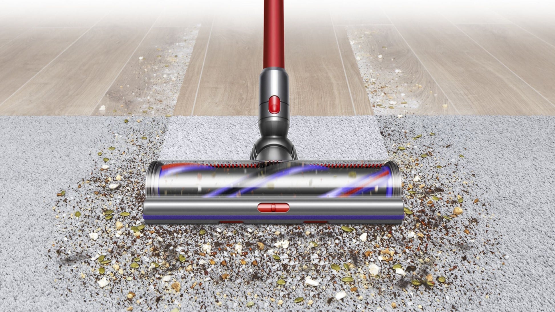 The Digital Motorbar™XL is 25% wider than the V15 Detect's, covering more floor in one pass for faster cleaning. Stiff nylon bristles drive deep into carpets to remove dirt, and carbon fiber filaments capture fine dust on hard floors.