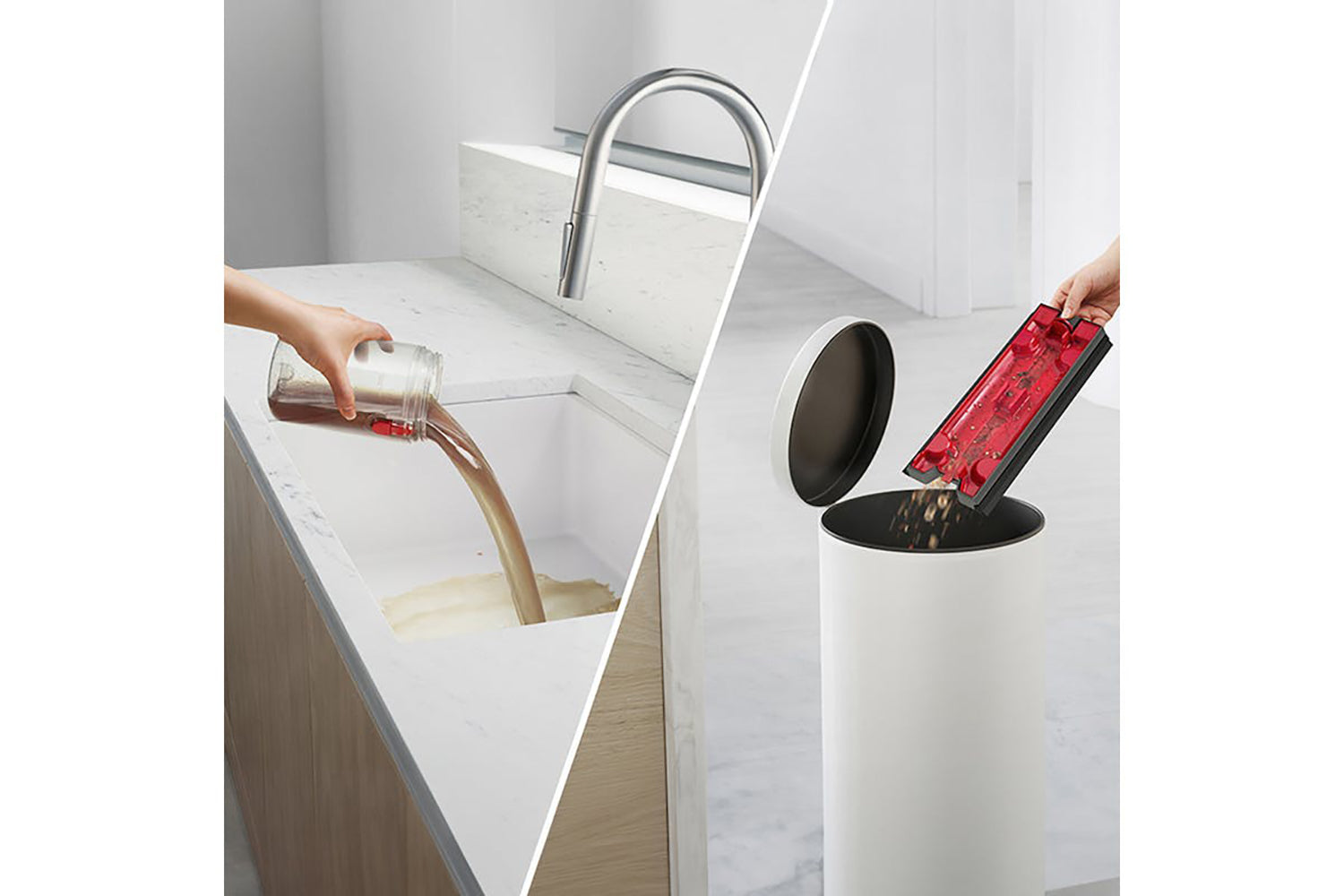 Dyson’s unique system separates dirty water from dry debris for hygienic disposal.