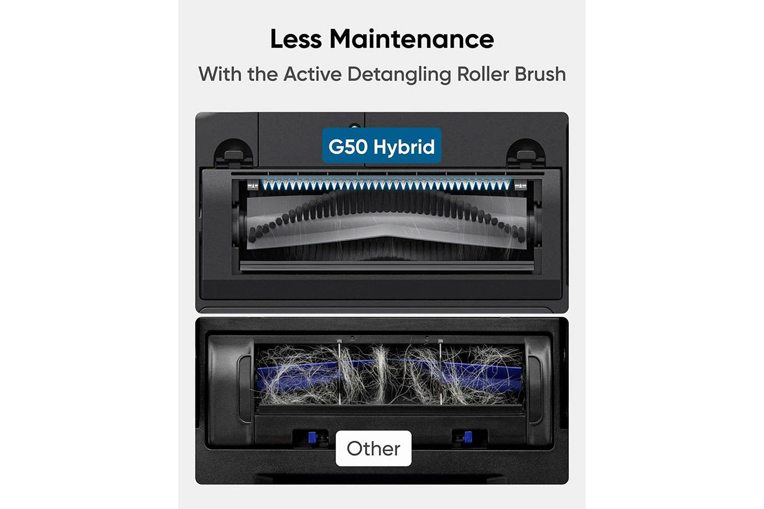 Removing hair that's stuck on the roller brush is time consuming and messy. G50's roller brush equipped with a patented Pro-Detangle Comb that removes hair automatically so you don't have to do maintenance so often.