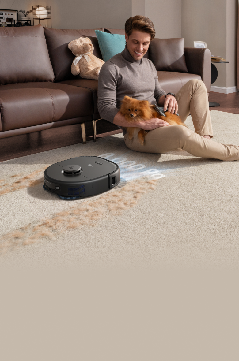 Spend quality time petting your pooch while the Eufy X10 Pro Omni sucks out danders from your carpet in just one pass thanks to its multi-directional floating roller brush that spins much closer to the surface as the rubber and bristles work in unison to suck up pet hair, crumbs, dust and debris from the deepest crevices.