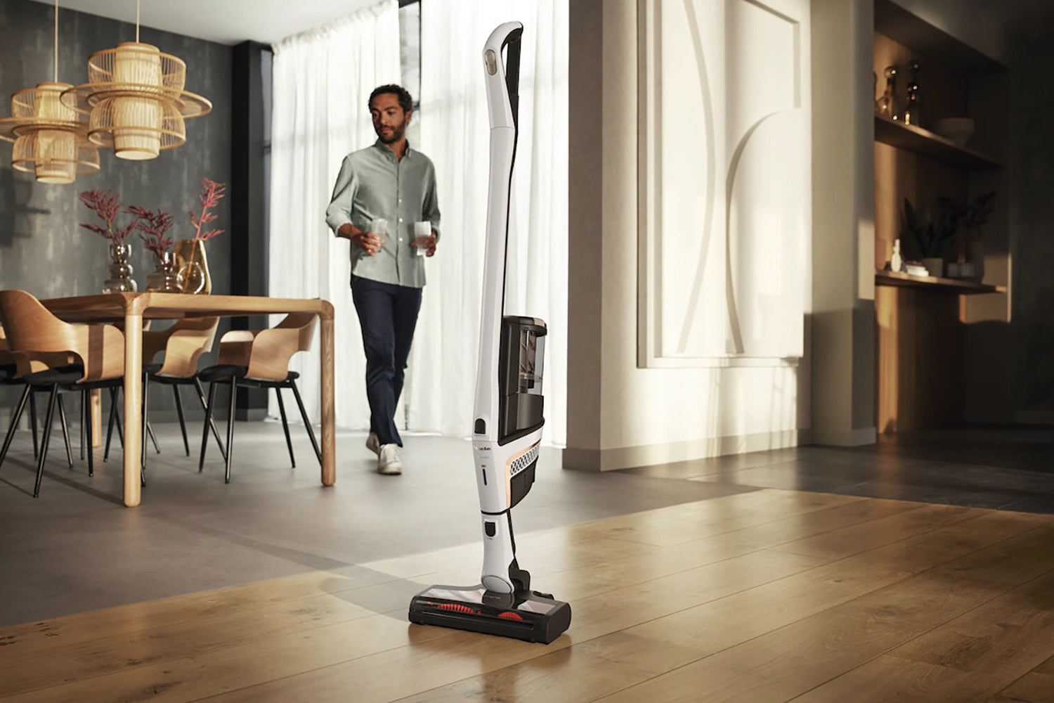 Position the PowerUnit at the bottom of your Miele Triflex HX2 vacuum cleaner. This is a really convenient way of vacuuming large rooms or areas – such as long hallways or spacious living rooms. The lightweight design makes your vacuum cleaner really easy to hold. And in case you need to take a break from vacuuming every now and then, it also features a self-standing function.