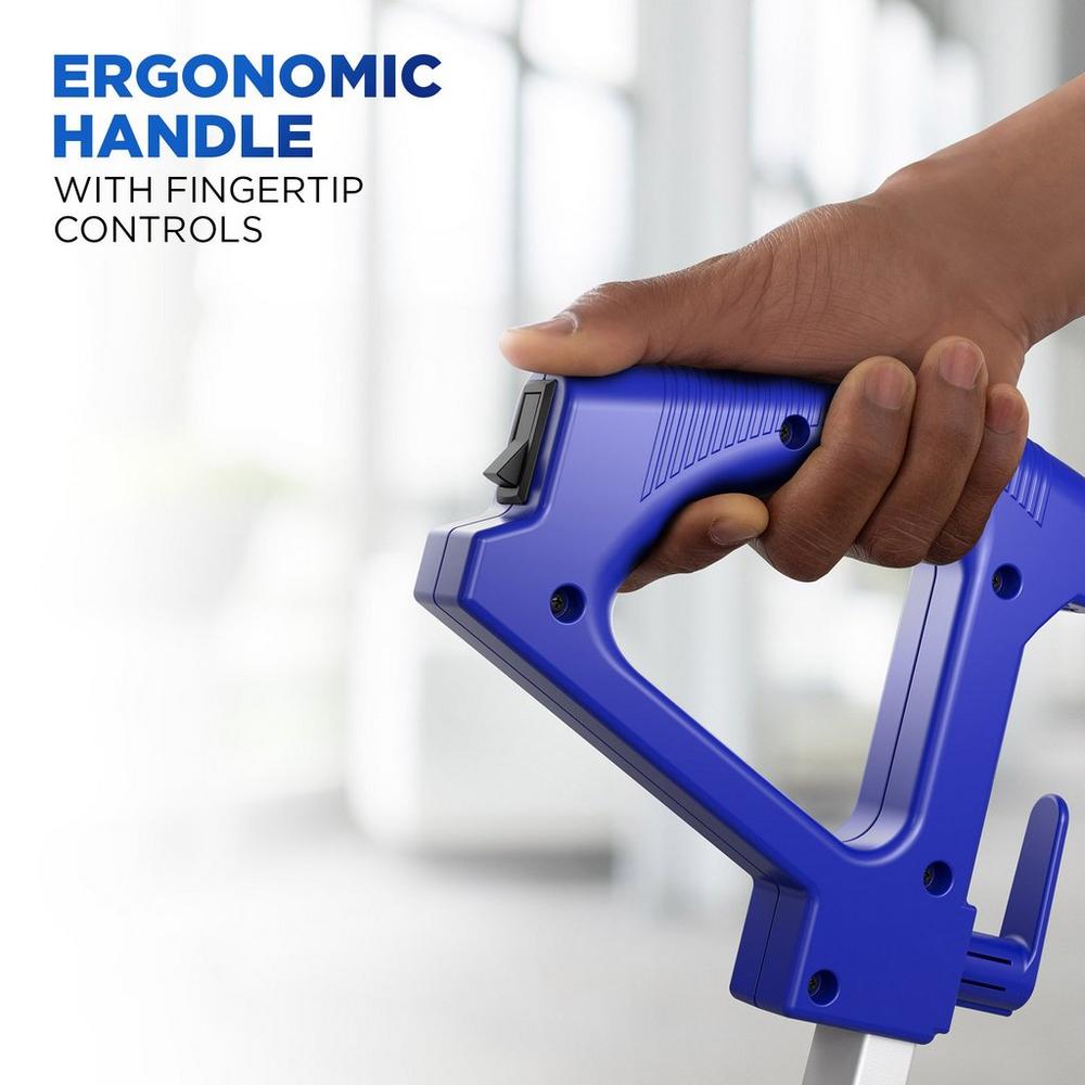 While the 35 ft. power cord allows optimal movement for your marathon cleaning session, this cord is well-protected from damage with a cord guard. The ergonomic Help Hand handle with fingertip controls keeps a low profile to reach under furniture, fittings, clothes rack and more. The brushed edge is perfect to scourge out cabinets and baseboards.