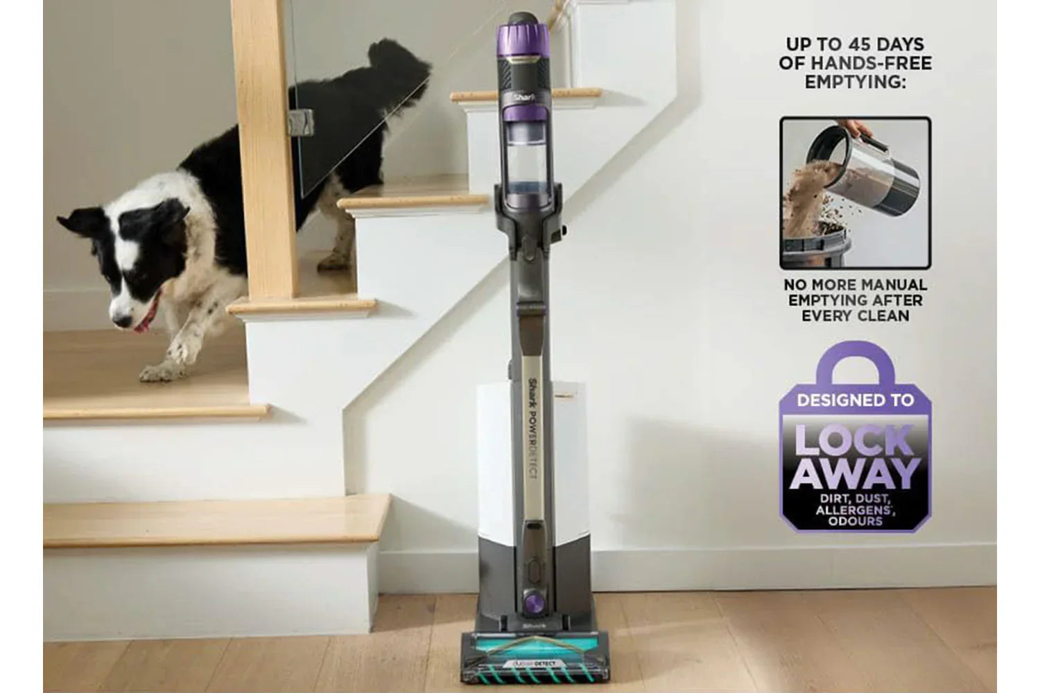 The Shark Power detect clean & empty is a powerful, intelligent, deep-cleaning cordless vacuum that charges and empties after every clean – locking away dirt and debris for up to 45 days.